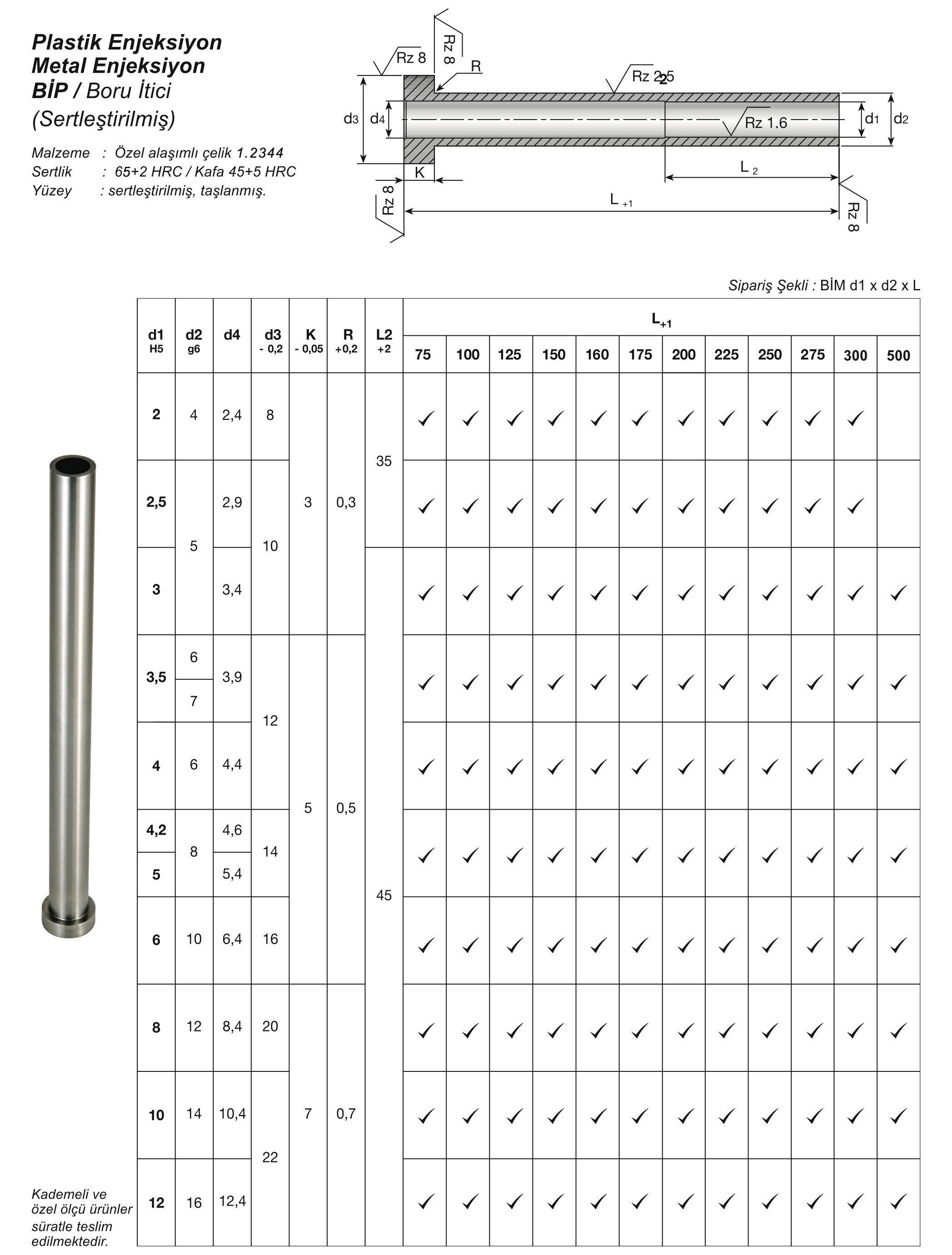 PLASTİK VE METAL ENJEKSİYON BORU İTİCİ PİMLER