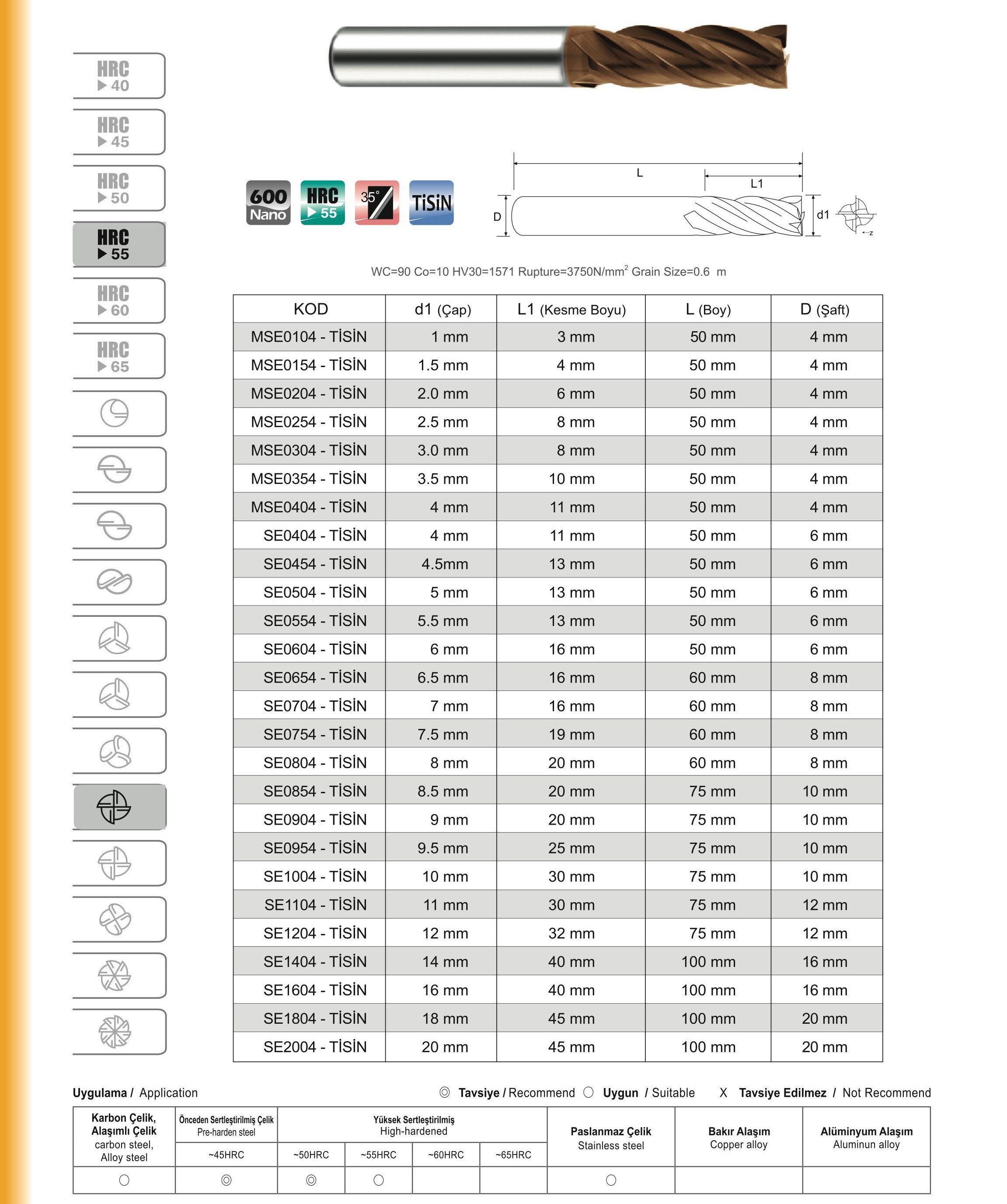 Karbür Freze Düz Ağızlı