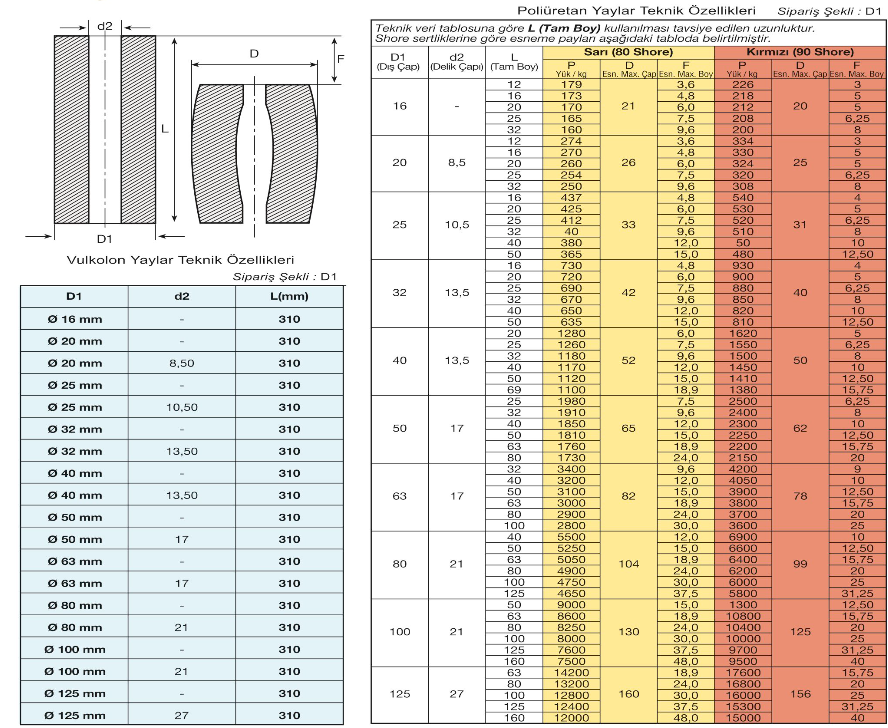 - Kırmızı Vulkolon Yaylar 90 Shore (Maksimum Esneme Payı %25)